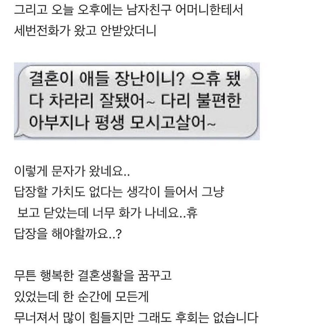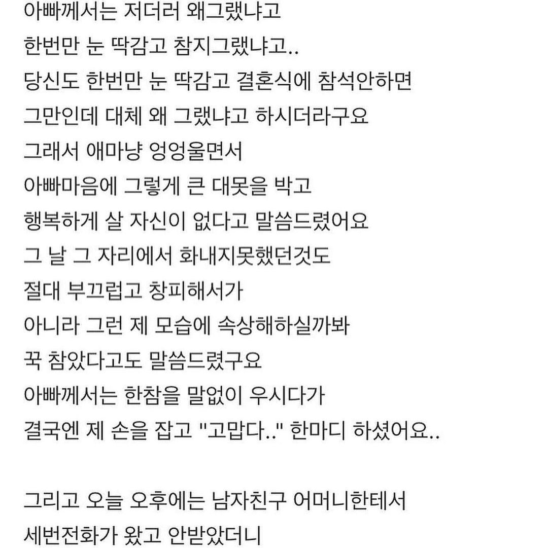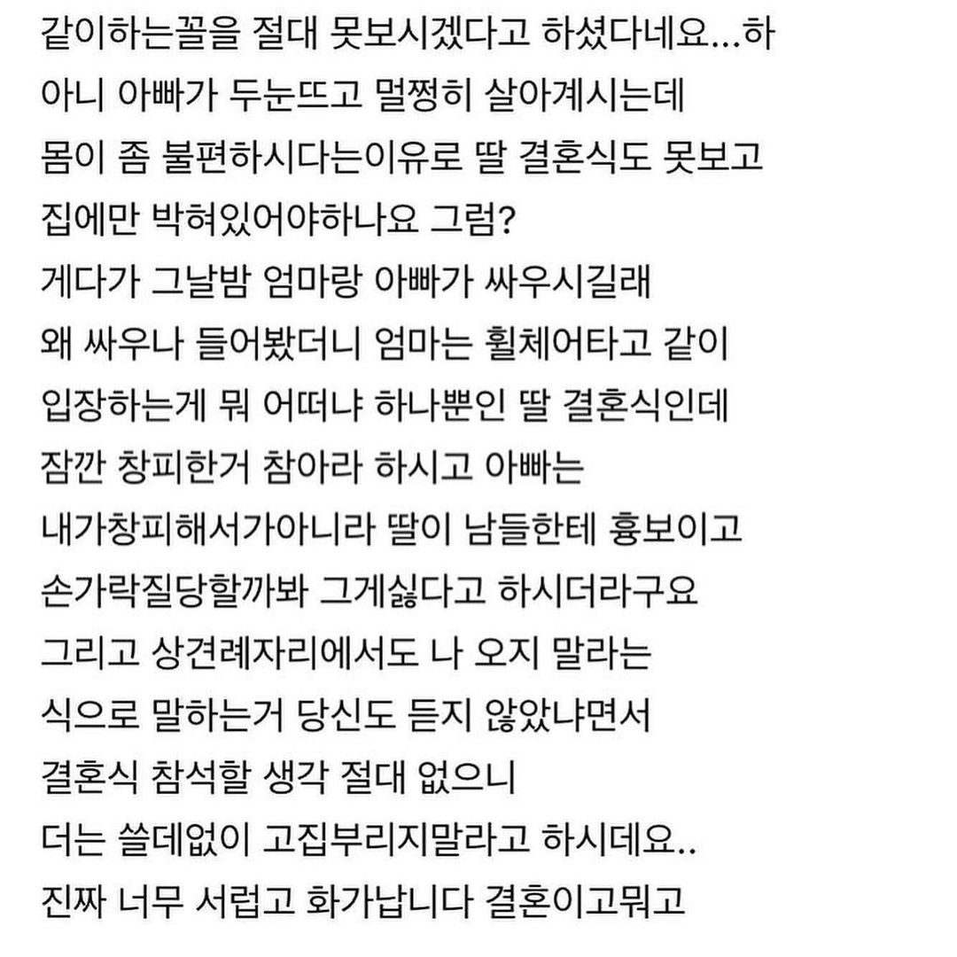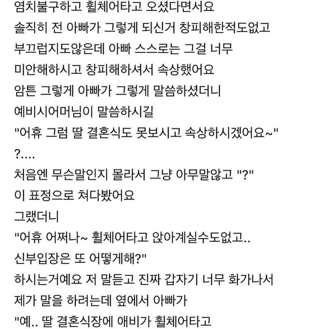 하반신 마비인 아빠, 결혼하기 싫네요 진짜