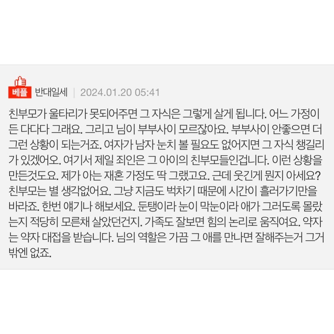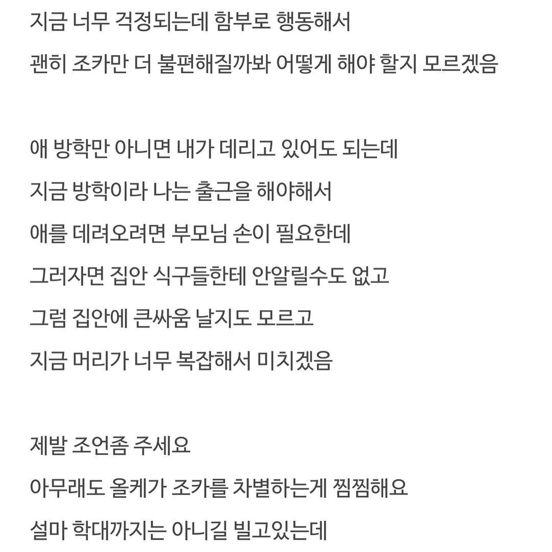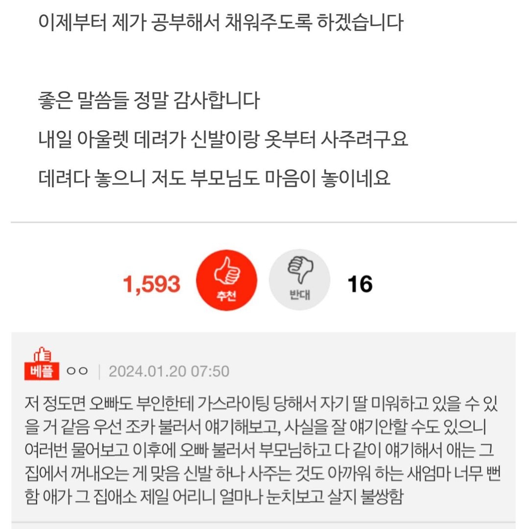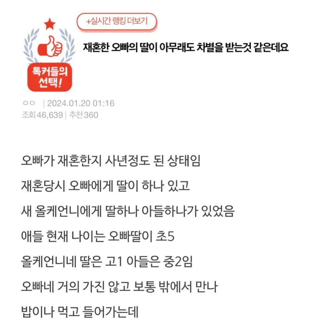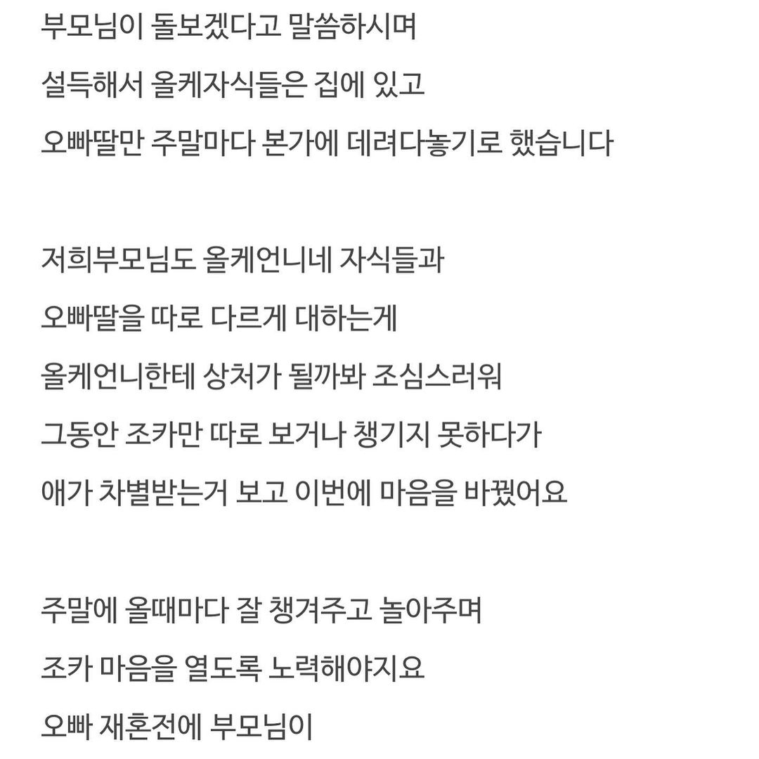 재혼한 오빠의 딸이 차별을 받는 것 같습니다