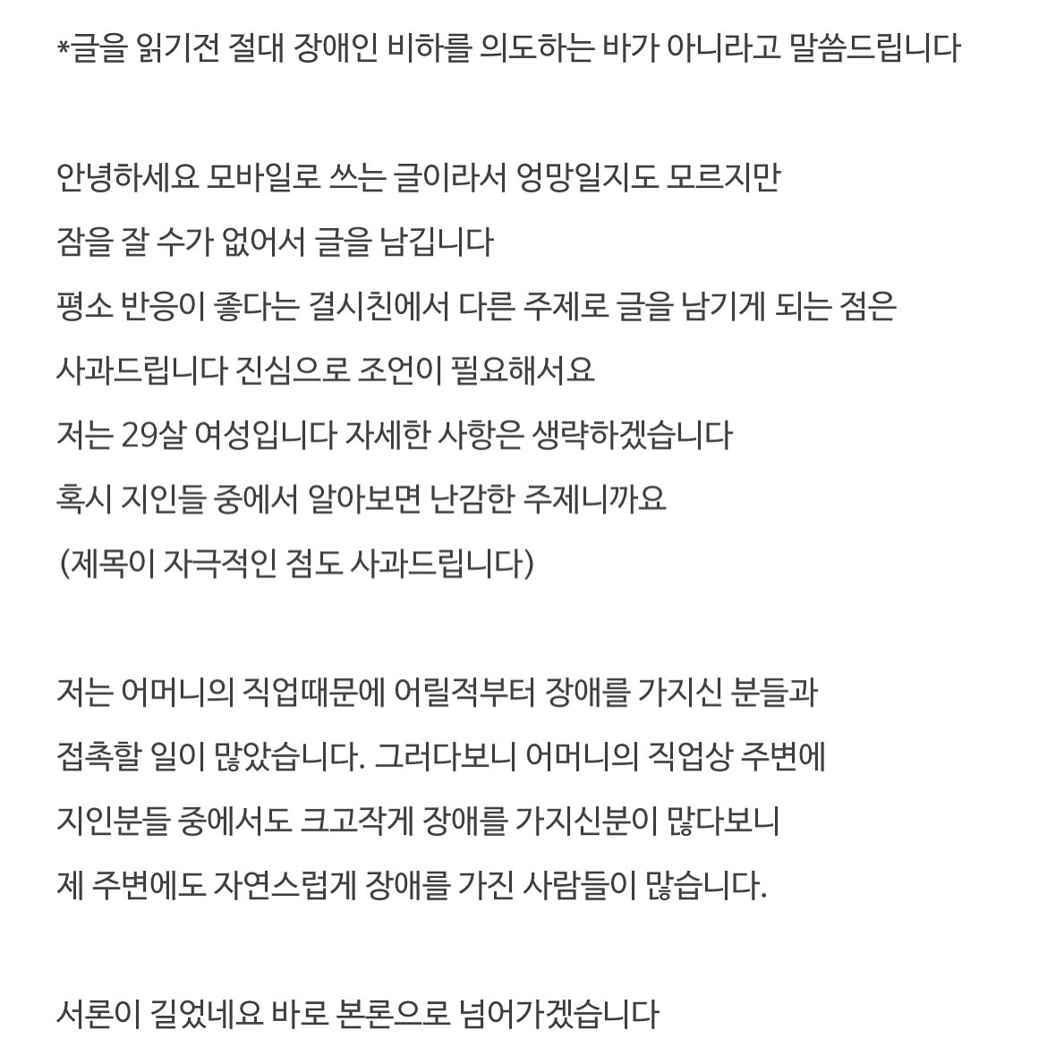 장애인인 자기 아들과 결혼해달라는 아주머니.. (+후기)
