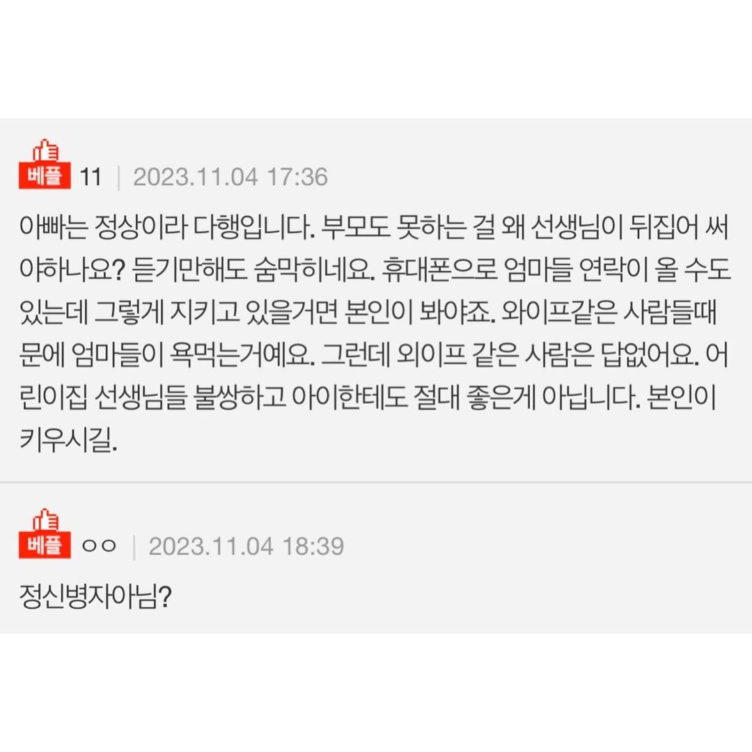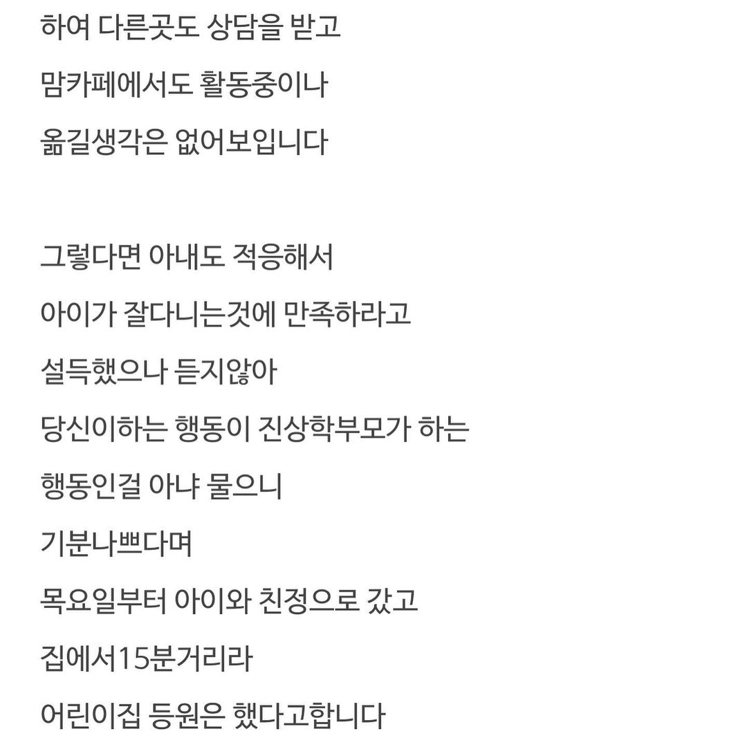 어린이 집에 진상짓 하는 아내 조언 부탁드립니다