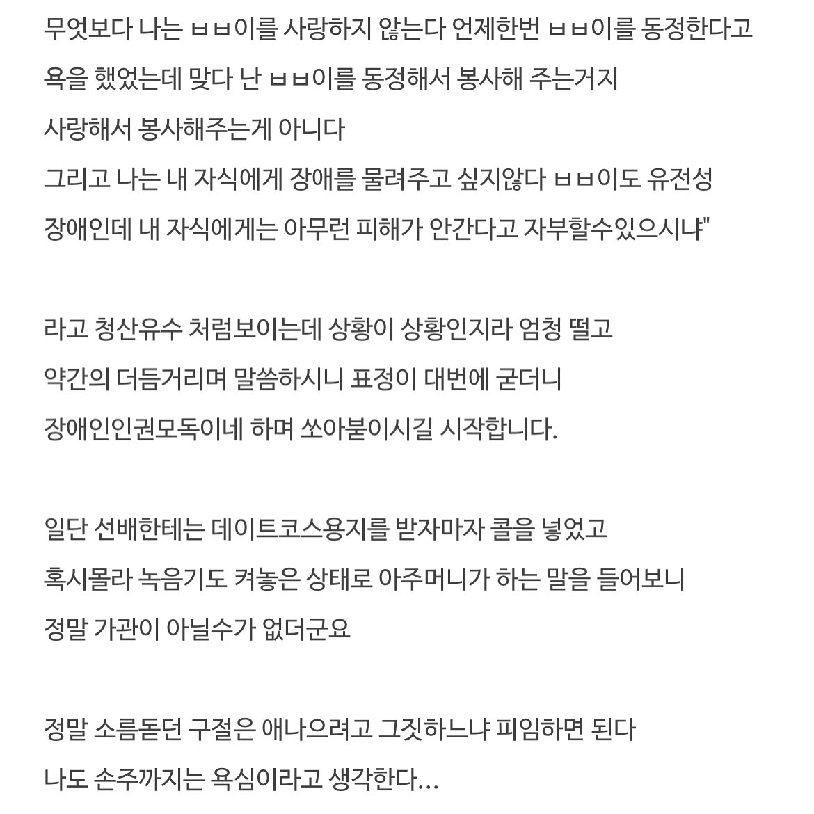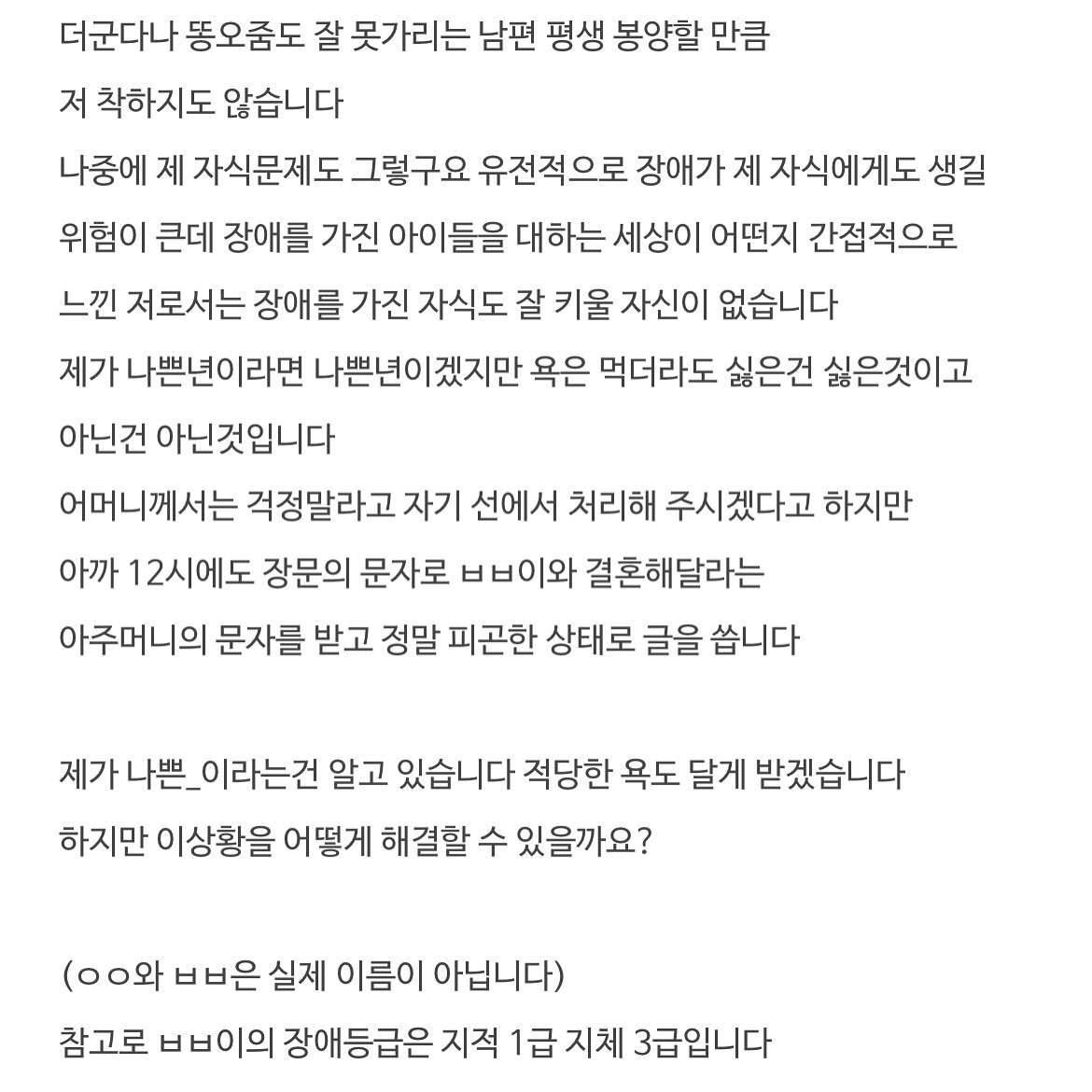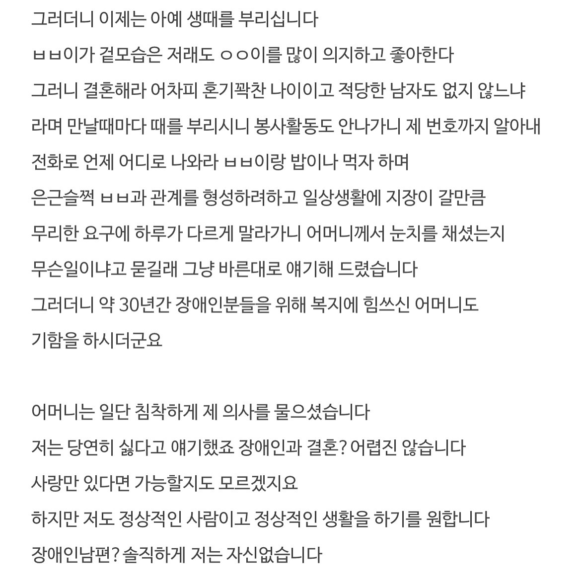 장애인인 자기 아들과 결혼해달라는 아주머니.. (+후기)